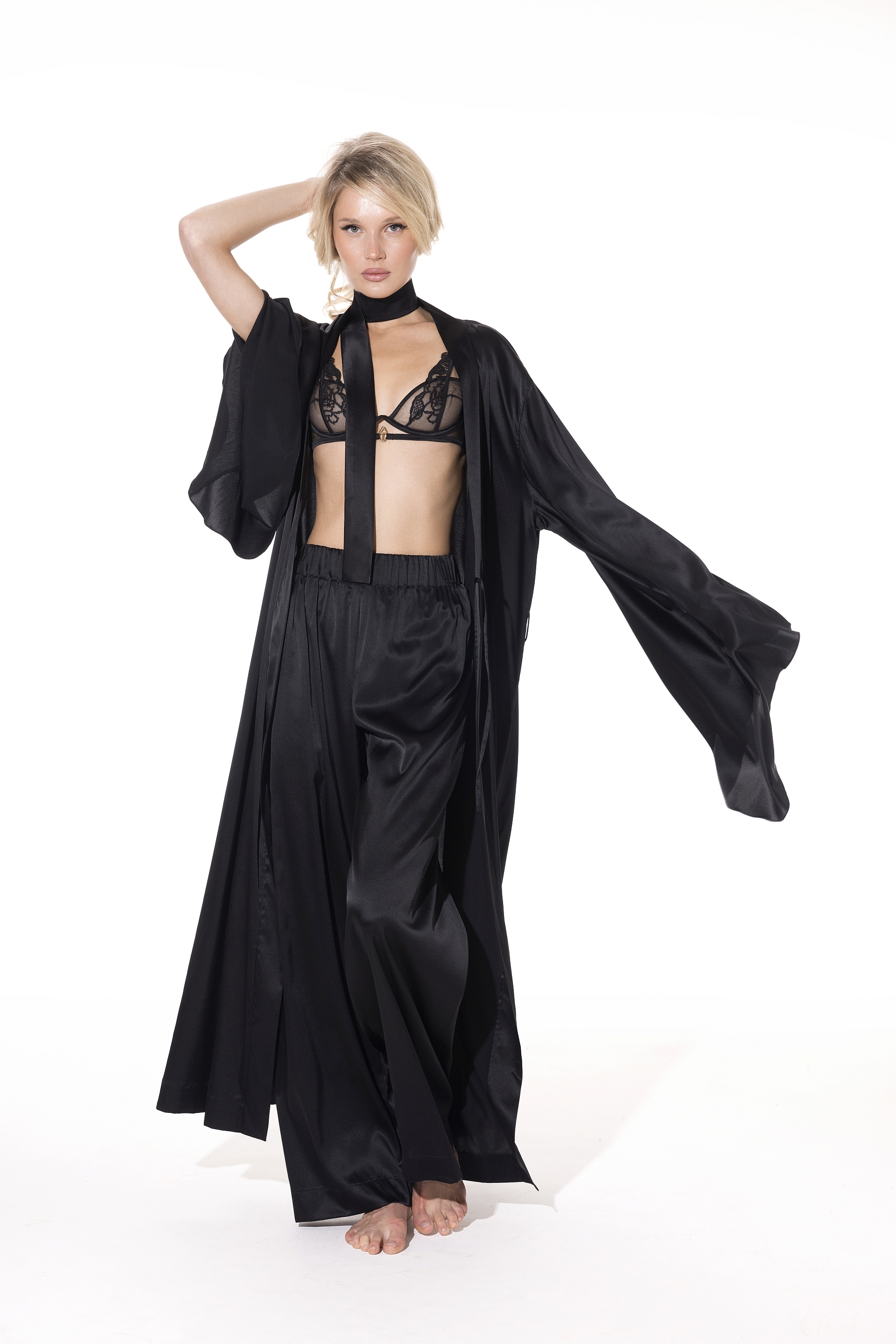 Брюки Emelene легко интегрируются как в утончённые домашние комплекты, так и в повседневные или вечерние образы вне дома. За счёт лаконичного кроя и благородной фактуры шёлка изделие может выступать как самостоятельный акцент либо как часть многослойного образа — в сочетании с бельевыми изделиями, топами или верхними слоями.